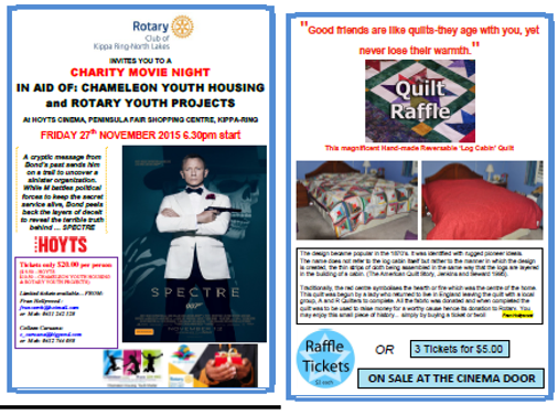 Our Club stages theatre nights as a Fundraiser at the Kippa Ring or North Lakes cinema complex, with patrons viewing classic new pre release movies. Funds raised are directed to Rotary’s Polio Plus campaign to eradicate polio throughout the world.